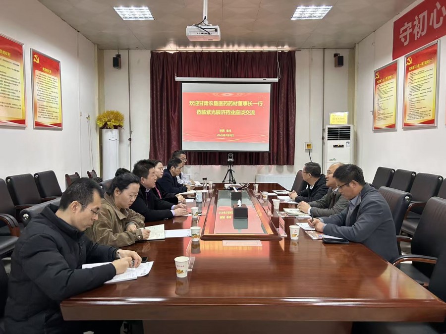 座谈会上,肖红星总经理对温志强董事长一行的到访表示热烈欢迎,并围绕公司发展历程、产业布局、核心优势及未来战略规划作了详细介绍。温志强董事长重点介绍了甘肃农垦医药的发展概况、产业资源及从药材种植、加工到终端应用的全产业链发展模式,展现了企业扎实的产业基础和独特的资源优势。