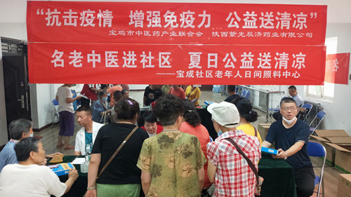 近日,宝鸡持续高温,天气炎热,国内疫情态势依然严峻,广大社区工作人员依旧奋战在抗疫一线,作为宝鸡地区重点中药知名企业,为回馈广大市民对陕西紫光辰济药业长期以来的支持与关爱,彰显企业的社会责任与担当,紫光辰济药业携手宝鸡市中医药产业联合会、宝鸡市公益慈善联合会共同举办“抗击疫情 增强免疫力 公益送清凉 ”进社区专属赠送活动,旨在把更多的健康和凉意送给广大人民群众。 7月7日上午,专属送清凉活动在宝成社区举行,活动现场,由慈善总会邀请的名老中医为前来咨询就诊的群众解除病痛困扰、耐心细致地解答群众的各种问题,紫光辰济药业为现场群众免费赠送治疗失眠、增强免疫力的公司独家产品-洋参五加口服液。社区群众表示,紫光辰济药业作为宝鸡老牌国企,在宝鸡有着极高的声望与社会信誉度,在企业发展的同时一直心系群众,是我们老百姓值得信赖的好企业,期望紫光辰济药业继续传承祖国传统中药事业,把企业越做越大,越做越强,为人民群众奉献更好更放心的优质产品。 此次活动受到了宝成社区及社区居民的高度赞扬与好评,紫光辰济药业也将秉承企业宗旨,在发展中药现代化和造福三秦父老的路上永远向前!