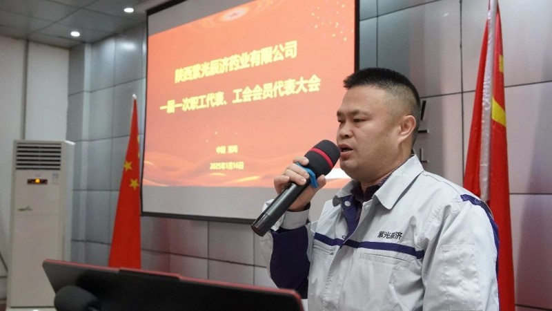 2025年1月16日,在上级工会的关爱和公司党支委的批准下,陕西紫光辰济药业有限公司一届一次职工代表、工会会员代表大会在公司县功生产基地3号会议室隆重召开。华融泰党委委员、副总经理、紫光辰济药业董事长李青山现场参会,紫光辰济药业常务副总经理肖红星进行主持。